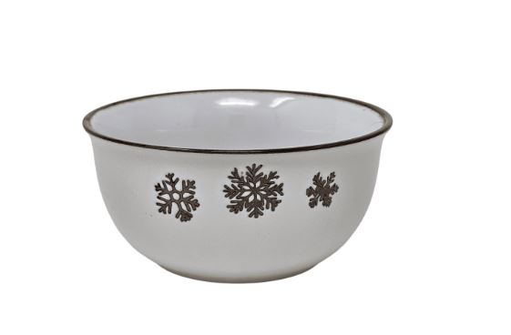 Coloris blanc mat motif flocons cuivrés, bord cuivré