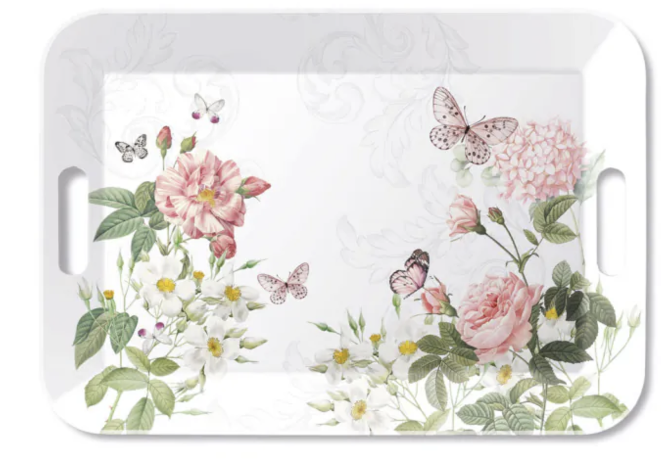Plateau en mélaminé 33x47cm Amelia avec papillons et roses
