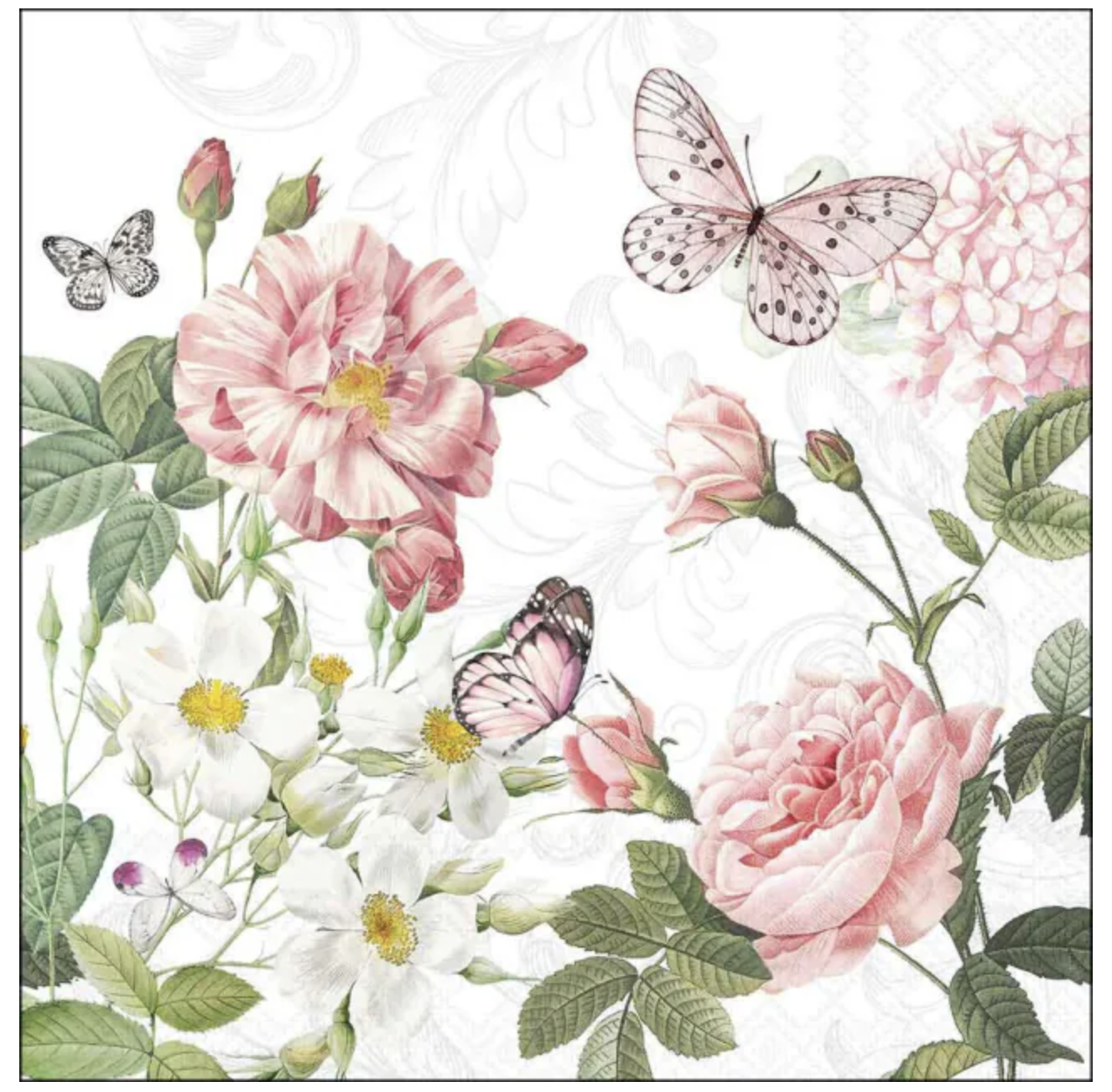 20 serviettes par paquet thème papillons, roses